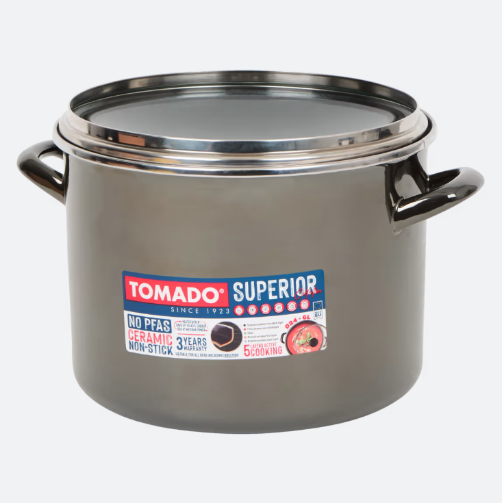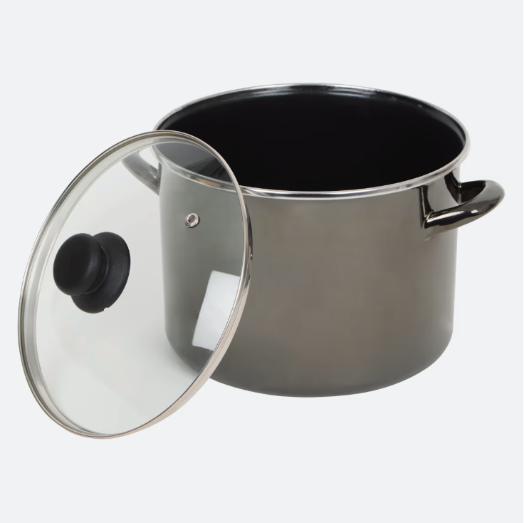 Stevige soeppan van 24 cm diameter en 6 liter inhoud.
